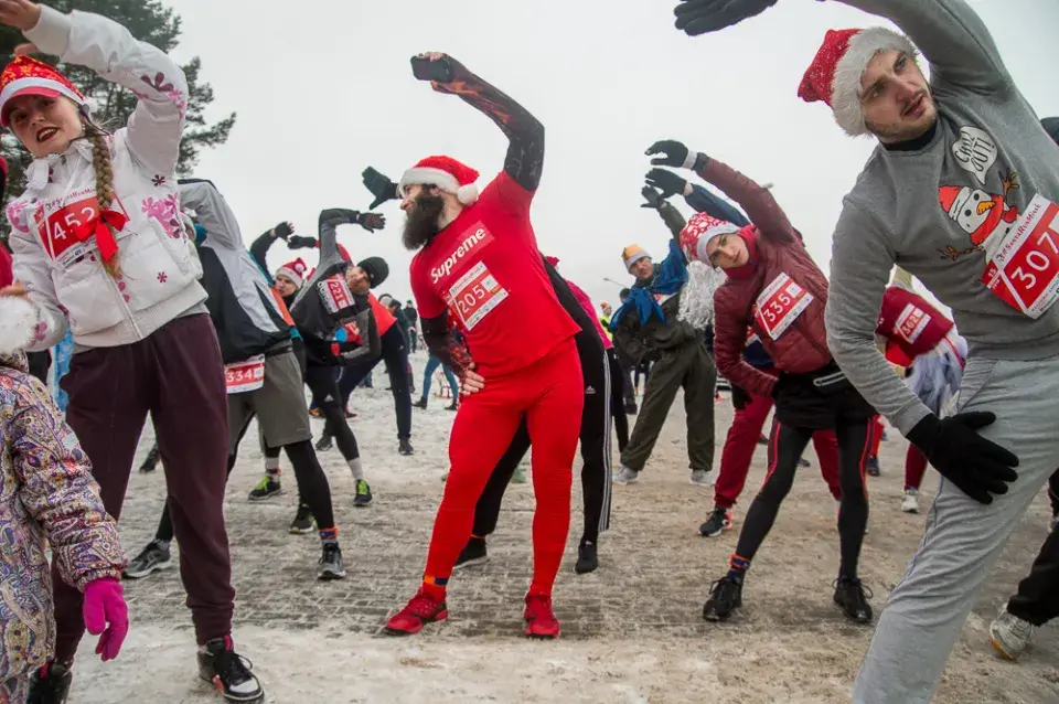 На финише участников ждали медали, мандарины, чай и праздничные открытки.