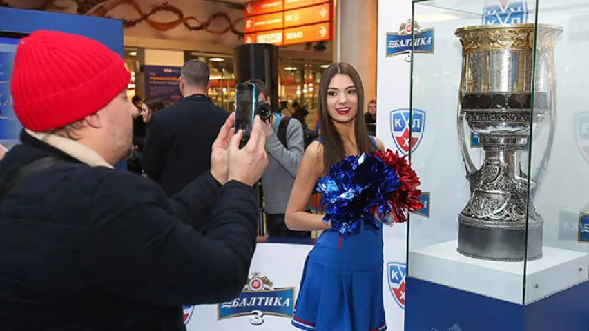 В Минск привезли главный трофей Континентальной хоккейной лиги. 23-24 января Кубок Гагарина был выставлен в специальной зоне в торговом центре "Замок", информирует БЕЛТА.