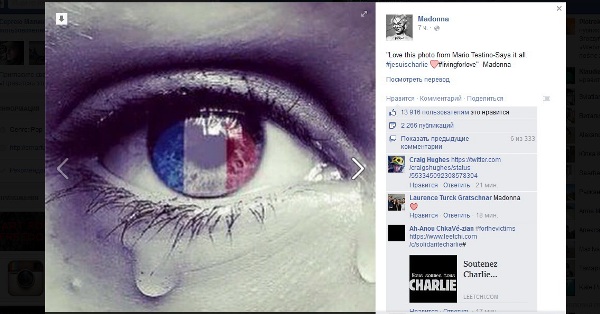 Слова сочувствия высказала и Мадонна. Певица написала 3 поста, посвященные трагедии: