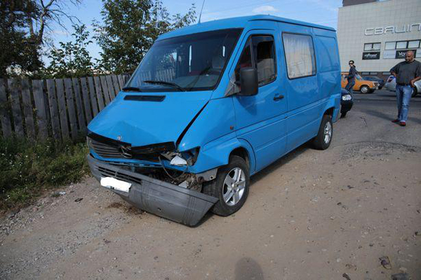 На светофоре стоял черный джип, а за ним голубой микроавтобус (оба марки Mercedes). Сзади микроавтобус протаранил Volkswagen Golf с российскими номерами. В результате удара микроавтобус столкнулся с джипом, оба получили повреждения.