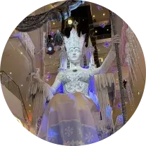 В декабре в "Галерее" поставили инсталляцию Снежной королевы, которая очень быстро стала популярной среди минчан. Одна из девушек решила сделать косплей инсталляции — костюм и тематический макияж. У нее получилось очень похоже.