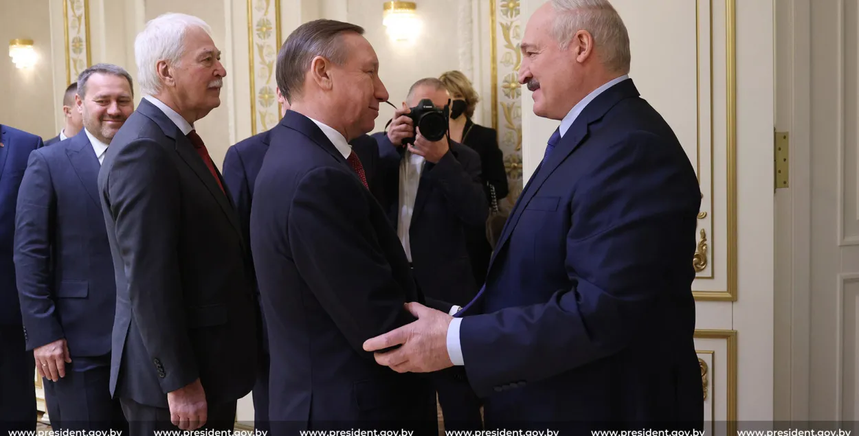 Российский посол Борис Грызлов (второй слева) и Александр Лукашенко. Минск, 1 февраля 2022-го / president.gov.by
