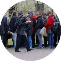 По выходным в час дня минские бездомные могут получить бесплатный горячий обед в благотворительной столовой. Люди приходят заранее, занимают очередь.