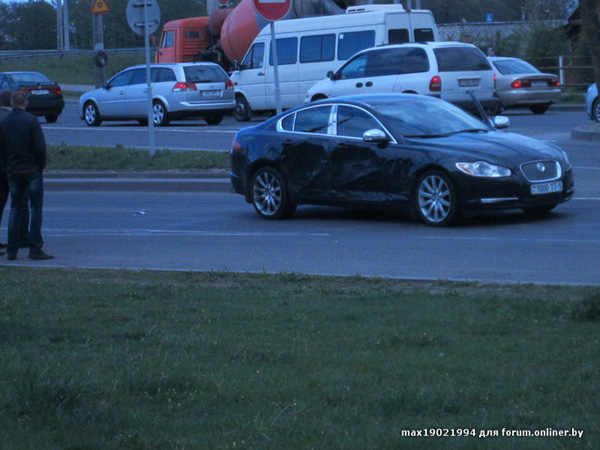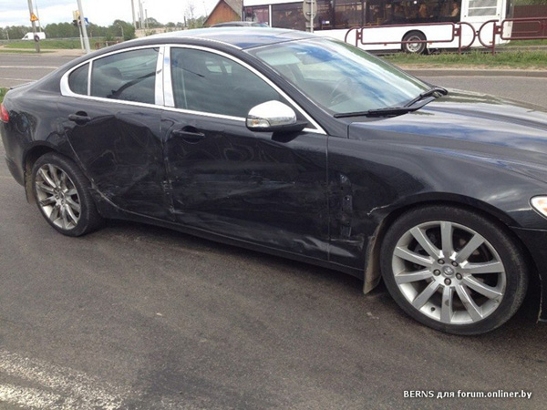 У Jaguar оказался поврежденным почти весь правый бок. А вот "Беларус" получил лишь царапины и потертости на шине переднего колеса.