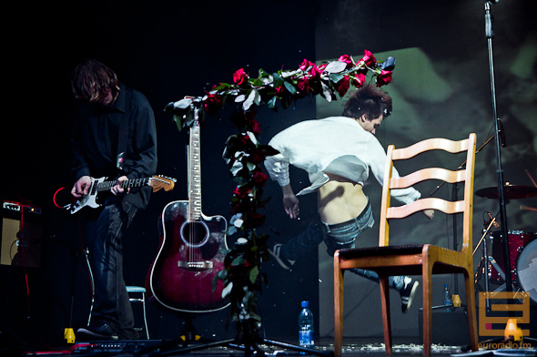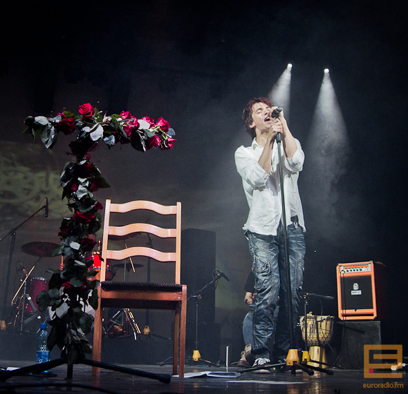 Кстати, анонсированной акустики у "Мутнагавока" не получилось. От неё, смеётся, остались только акустическая гитара и стул. И просьба публики удовлетворяется — теперь она танцует, а Евгений делает свои фирменные, эксцентричные выкрутасы под надрывные мелодии.