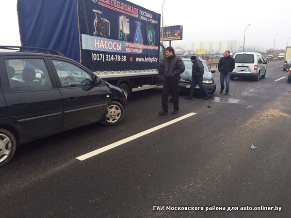 От удара автомобиль занесло, и в него врезался тентованный грузовик, говорит старший инспектор по агитации и пропаганде ГАИ Московского района Любовь Трепашко. Вдобавок ко всему в грузовик сзади въехал Hyundai.