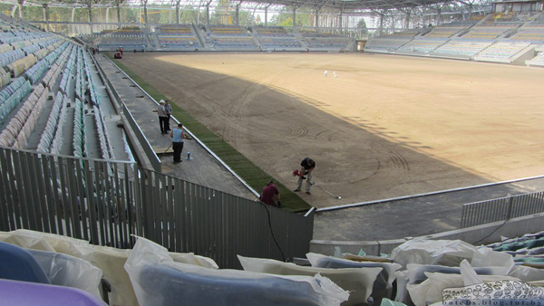 На новом стадионе БАТЭ укладывают газон (фото)