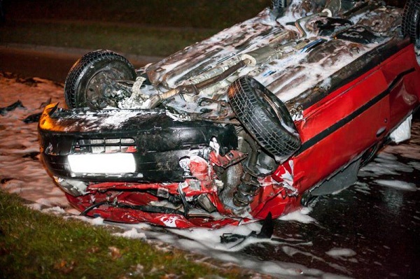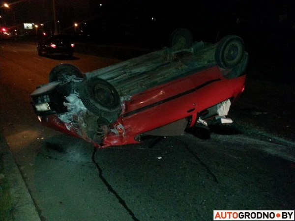 На окраине Гродно перевернулся пьяный водитель на Фиате (фото)