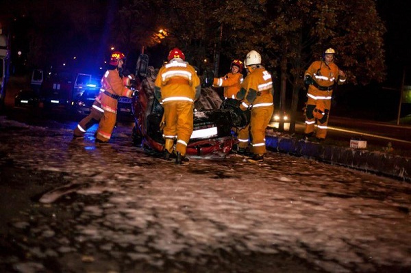 Из перевернутого Fiat стало вытекать топливо, по этой причине спасателям МЧС пришлось залить пеной отдел вокруг хетчбэка.