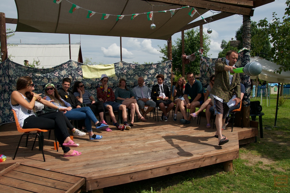 Позже волонтеры поднимаются на сцену. Игра называется "Хорошо ли ты знаешь своих волонтеров?”. Оказывается, что воспитанники не только в курсе того, как зовут бойфрендов девушек из Уэльса, но и знают, кто из них говорит по-французски и валлийски, кто не любит чистить картошку и мыть посуду и т.д. Волонтеры, в свою очередь, знают историю и характер всех сегодняшних "зрителей". Но волонтеров не хватает, констатирует Алексей, особенно белорусских, появление которых как минимум могло бы облегчить работу женщины-повара, не говорящую по-английски. Также новые помощники могли бы работать в самом хосписе и посещать семьи с больными детьми. А стать волонтером, убежден Алексей, может каждый. Стоит только захотеть!