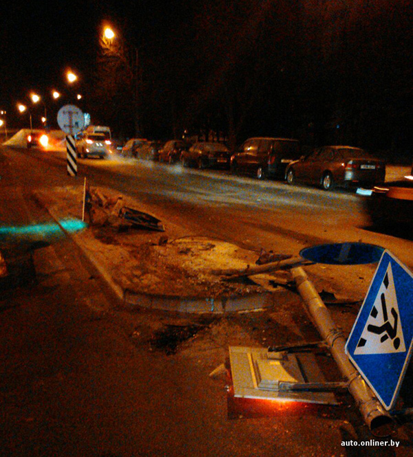 Как информирует сайт onliner.by, автомобиль выехал на островок безопасности и сбил столб, на котором стоял светофор. Известно, что водитель приехал в столицу из Клецка. Кроме штрафа и оплаты ремонта машины ему придется оплатить восстановление светофора.