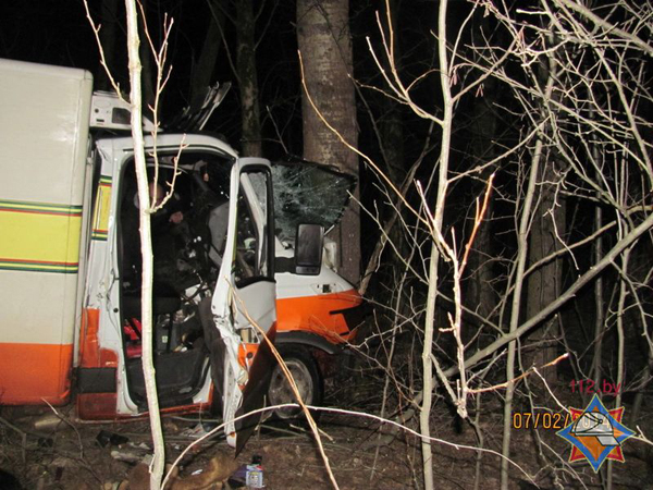 Ночью в Шумилинском районе грузовик протаранил дерево (фото)