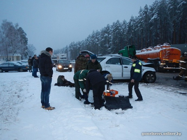 Около Речицы столкнулись бензовоз и легковой автомобиль (фото)