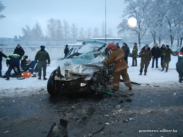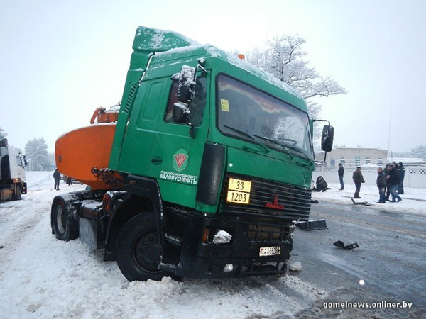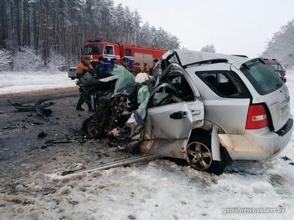 Внедорожник Kia и автоцистерна "Белоруснефть" столкнулись около Речицы. Происшествие произошло утром 12 декабря. Легковой автомобиль пошел на обгон на скользкой дороге, выехал на встречную полосу движения и не успел вернуться в свой ряд. В результате произошло лобовое столкновение внедорожника и бензовоза.