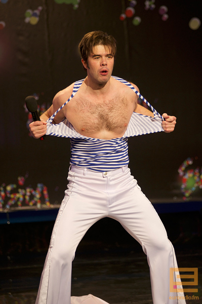 Полноценных номеров, кстати, маловато. Помимо Алекса-Нормалекса заморочился над шоу на момент нашего присутствия на отборе разве только квартет Napoli. Группу долго ждало жюри, потому что девушки не могли справиться с шикарными юбками с шлейфом.