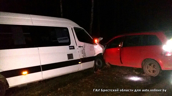 Под Барановичами столкнулись маршрутка и Опель: 6 человек в больнице (фото)