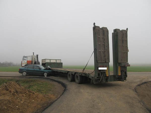 Автомобиль "Ауди" в тумане столкнулся с длинномерным полуприцепом-платформой "МАЗа". Происшествие произошло утром 13 ноября у деревни Новоселки Гродненского района. Грузовик двигался задним ходом на другую дорогу для погрузки экскаватора.