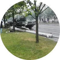 "Танк, который двигался по проспекту Независимости, выехал за пределы проезжей части, совершил наезд на бордюр, а дальше на осветительную мачту. На место выезжали сотрудники ГАИ. Данное происшествие было оформлено, сейчас ведется проверка. О ее результатах будет сообщено дополнительно", — цитирует БЕЛТА слова Корниевича.