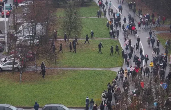 Бело-красно-белый флаг на минской многоэтажке / Из архива Еврорадио