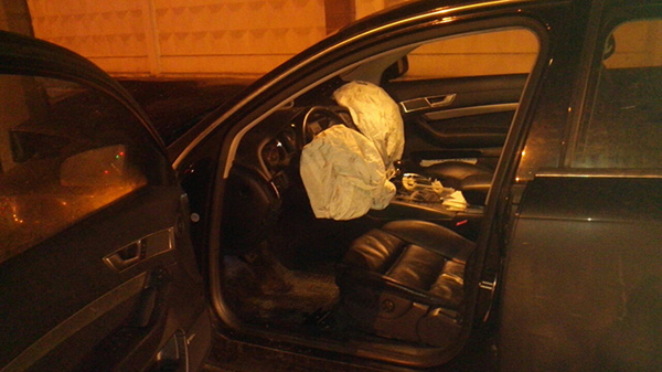 Пьяные парни на Audi A6 чуть не сбили остановку, но врезались в столб