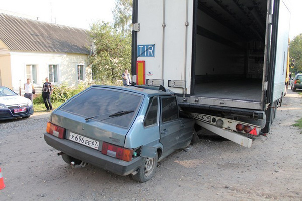 Около 16 часов 22-летний нетрезвый могилевчанин на автомашине ВАЗ-2109 ехал слишком быстро. Он столкнулся с грузовым автомобилем Volvo с полуприцепом Shmitz, который стоял у правого края проезжей части.
