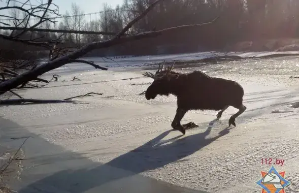 ЗПроисшествие случилось на реке Лесная. Чтобы помочь животному, сотрудникам МЧС пришлось использовать бензопилу.