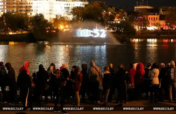 Проекционный экран в акватории реки Свислочь получился рекордных размеров: 24 на 12 метров.