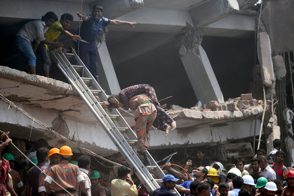 Там обрушился восьмиэтажный дом, в котором находись фабрики одежды и многочисленные торговые точки. С каждым днем количество жертв растет. Теперь их уже 1035, и разбор завалов продолжается.