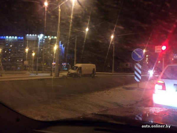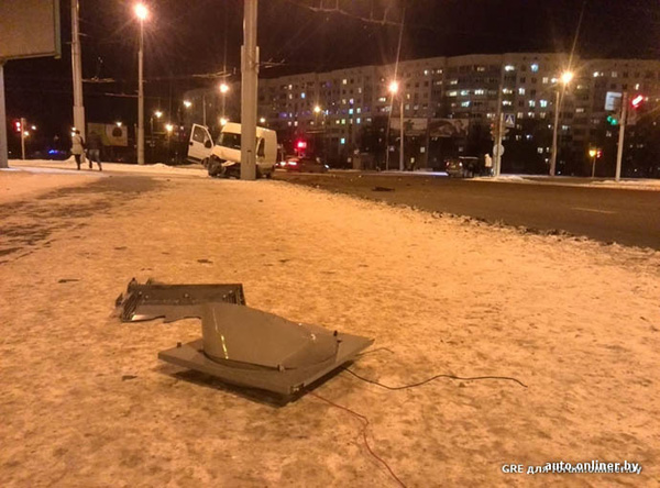 Два автомобиля столкнулись на одном из перекрестков в Минске. Mitsubishi Space Star медленно поворачивал налево и не пропустил микроавтобус, который, в результате столкновения, отбросило на тротуар. Там он сбил дорожный знак. К счастью он не затронул пешеходов. Очевидцы говорят, что знак пролетел буквально в метре от женщины с ребенком, отмечает сайт onliner.by.