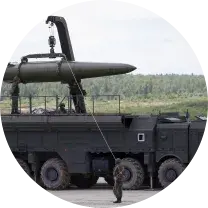Белорусский военный на фоне комплекса “Искандер-М”, который может быть носителем ядерного оружия / Министерство обороны