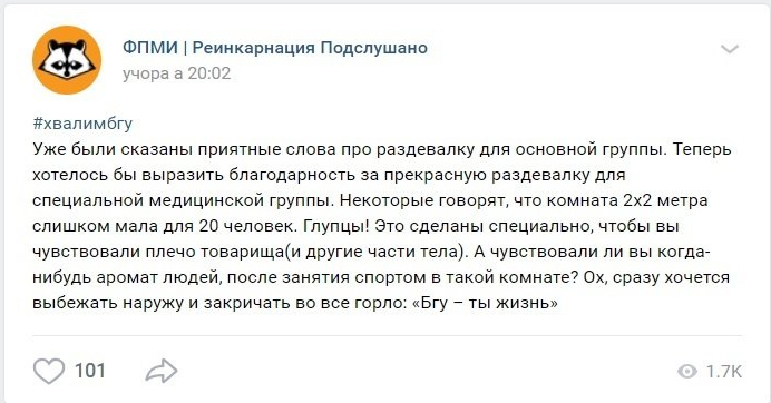 Пост из соцсети "ВКонтакте"