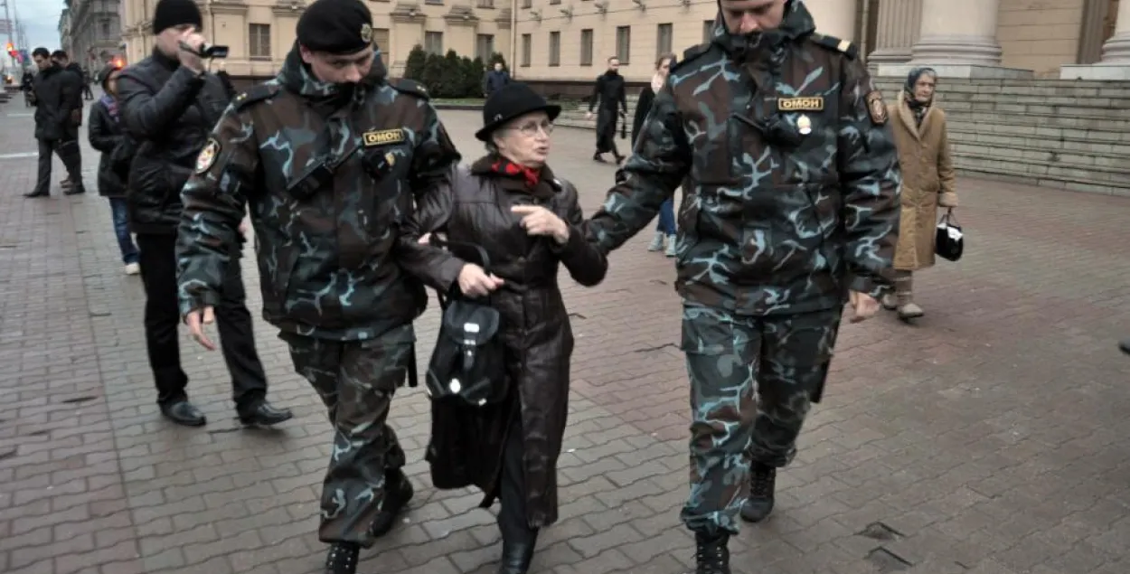 Кроме того, ОМОНовцы задержали активистку Нину Богинскую и еще одну женщину, которая представилась как "подруга задержанного по "делу боевиков" Волкова".