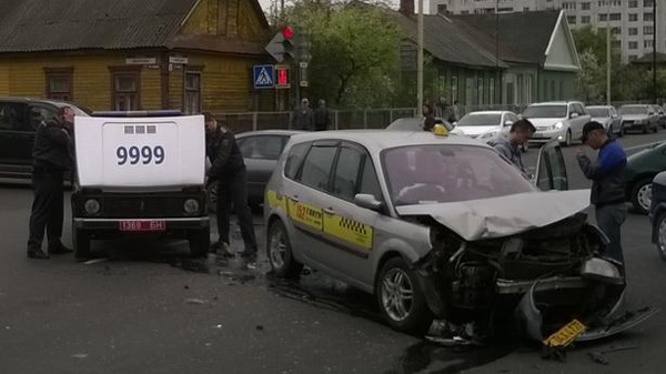 Милицейский автомобиль ехал на красный свет с включенными спецсигналами. Водитель такси на него почему-то не отреагировал. В результате произошло столкновение. От удара в милицейской машине заклинило звуковой сигнал и он звучал еще некоторое время. Пострадали несколько человек, которые ехали в автомобилях.