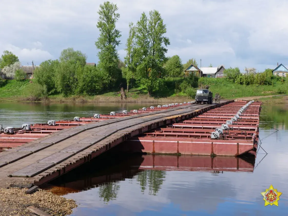 В Бешенковичах праздник — вновь возводят понтонный мост через Западную Двину. Его длина составляет более 150 метров, он способен выдержать нагрузку около 20 тонн.