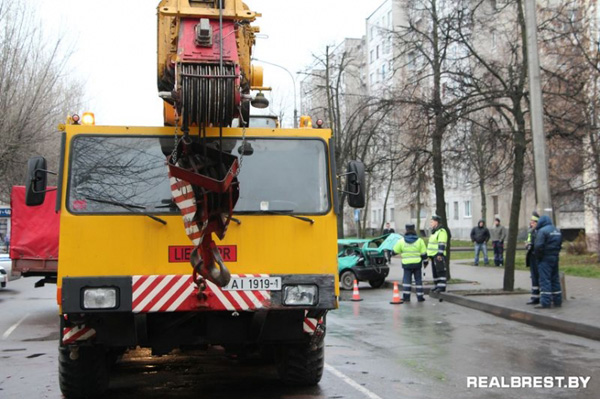 В Бресте автокран чуть не раздавил "малолитражку" (фото)