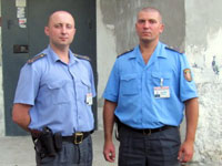 С места происшествия "матерый хулиган" скрылся. По полученным от свидетелей приметам он был задержан в подъезде одного из жилых домов двумя милиционерами. При этом боксер оказал активное сопротивление. Как сообщает пресс-служба гомельской областной милиции, правоохранители (на фото) говорят, что "задержать нарушителя не составило труда".