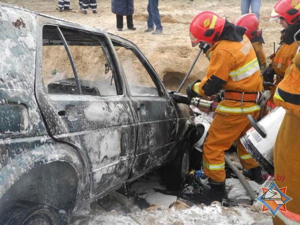 Как сообщает пресс-служба спасателей, Volkswagen Golf горел открытым пламенем, в нем находился мужчина. Пресс-секретарь гомельских спасателей Руслан Габрилев рассказал Еврорадио, что мужчину из автомобиля пытались извлечь.