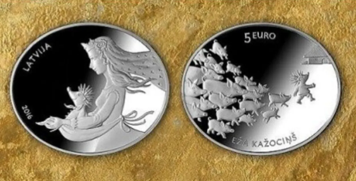 В Латвии выпустили серебряный евро с ежиком и поросятами (фото)