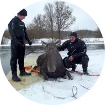 Сотрудники МЧС вытащили косулю и с помощью спасательной доски и веревок вытянули на берег. Далее животным занимались уже ветеринары районной ветстанции.