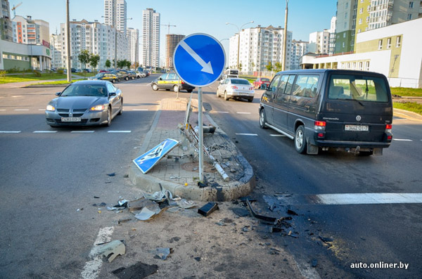 Как сообщает сайт onliner.by, во время происшествия никто не пострадал. Свидетели говорят, что водитель вероятно не заметил "островок безопасности", так как светофор и фонари на перекрестке не работали.
