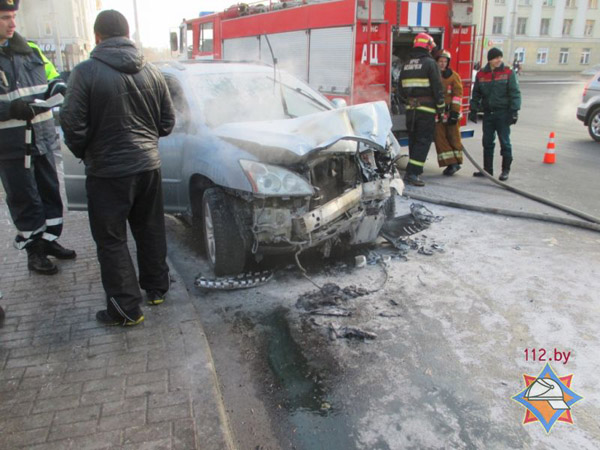 В Могилеве легковушка столкнулась с рейсовым автобусом и загорелась (фото)