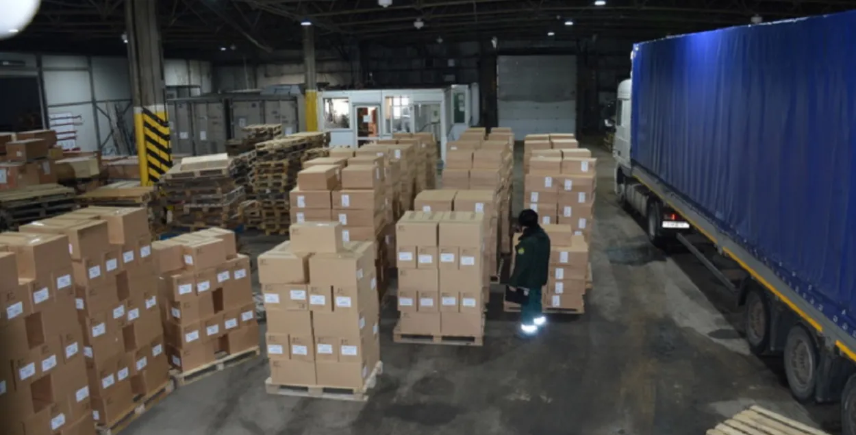 Как сообщает customs.gov.ru, грузовик ехал из Беларуси в Санкт-Петербург. Его остановили для проверки в Смоленской области. С помощью мобильного инспекционно-досмотрового комплекса автомобиль просканировали. Выяснилось, что среди пищевых продуктов спрятано около тысячи коробок с сигаретами производства табачных фабрик "Неман" и "Табак-инвест". По предварительной оценке, стоимость задержанной контрабанды превышает 56 млн российских рублей (686 тысяч долларов).