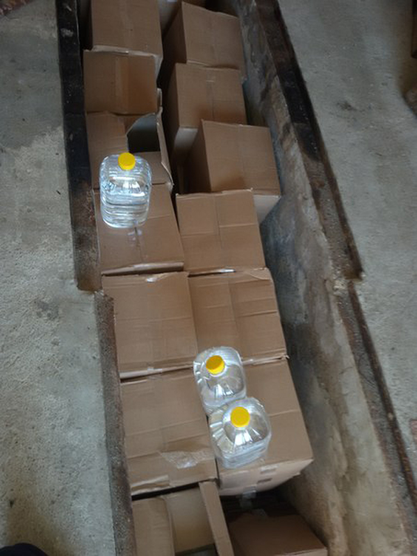 В его гараже хранилось не только 1355 литров спиртосодержащей жидкости, но и 35 литров самогона.