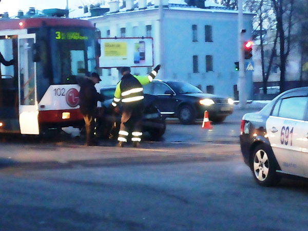 Автомобиль получил сильные механические повреждения. Не обошлось без пострадавших. По данным ГАИ, несколько пассажиров трамвая обратились за медицинской помощью. Свою вину в ДТП водитель BMW признает.