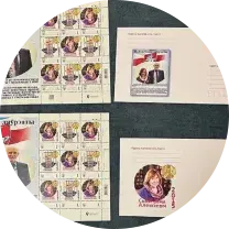 В Украине изданы марки, посвященные протестам в Беларуси. Как сообщает racyja.com, на листике три марки, посвященные протестам 2020-го в Беларуси, три марки со снимками празднования 100-летия БНР и три марки "Невероятные" с фотографиями митинга в Минске, когда люди снимали обувь, чтобы встать на скамейки. На привеске помещено фото женщины в белом перед шеренгой омоновцев и отрывок из стихотворения Владимира Некляева.