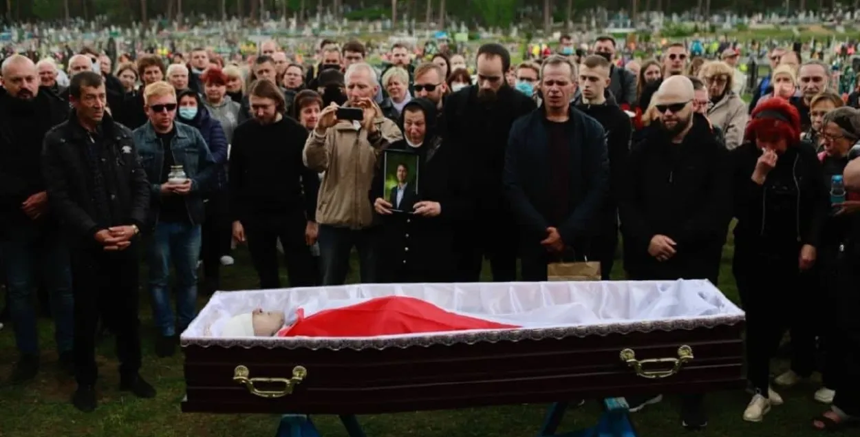 На похоронах Витольда Ашурка его тело укрыли бело-красно-белым флагом.