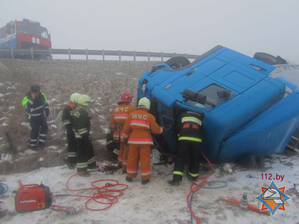 4 февраля около Гродно польская фура DAF с грузом детских подгузников пробила ограждение трассы М6 и вылетела в кювет. Водитель был заблокирован, его освободили спасатели. Мужчину, который получил травмы ног, госпитализировали, информирует пресс-служба МЧС.