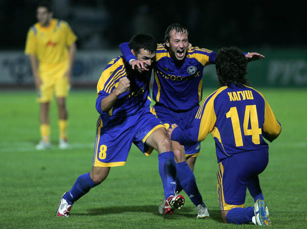 Так борисовчане радовались первому выходу БАТЭ в групповой раунд Лиги чемпионов. Август 2008-го. Игорь Стасевич (в центре) сейчас снова в составе команды.