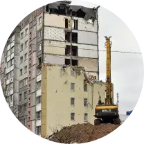 Сейчас возле дома идет установка и монтаж башенного крана для восстановительных работ. Параллельно разрабатывается проектная документация.