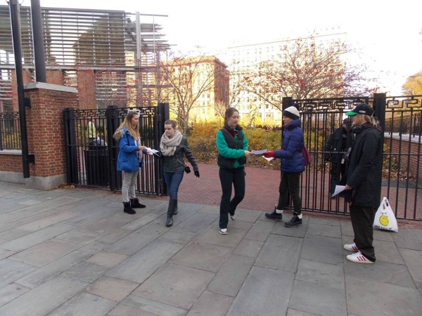 Раздача листовок прошла около Колокола Свободы (Liberty Bell) — одного из главных символов американской борьбы за независимость. Об этом сообщает в Фейсбуке один из участников акции Евгений Иванюк.